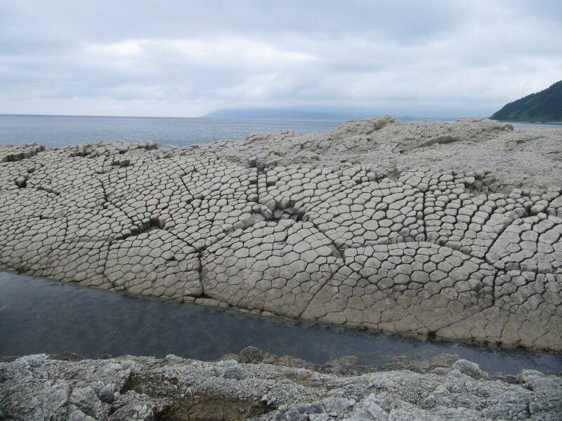 Cape Stolbchaty op Kunashir Eiland in Rusland