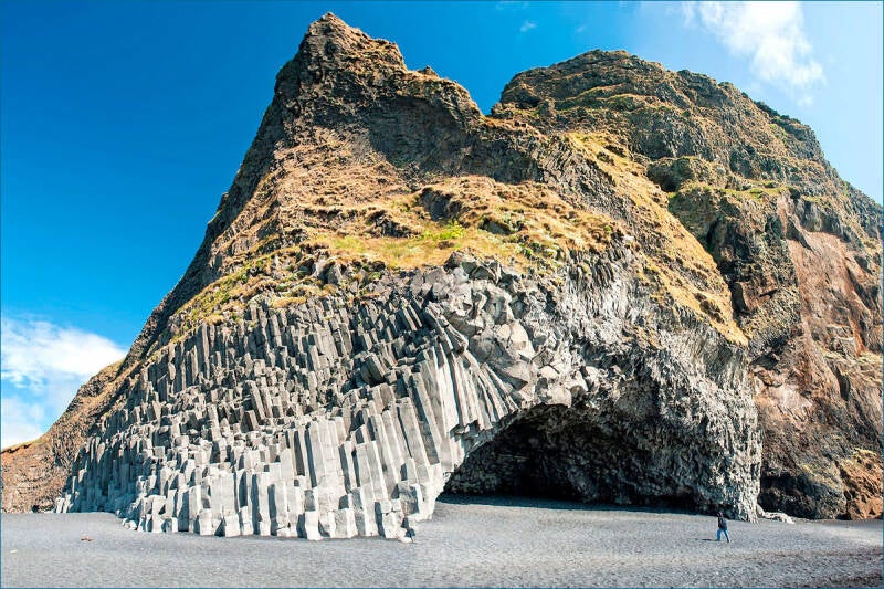 Het zwarte zandstrand Reynisfjara op IJsland
