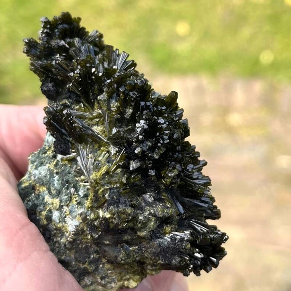 ES: Hermosa Epidota verde de Casterner de les Olles en España. Las varillas de epidota de este lugar suelen estar una al lado de la otra, pero en esta sección están parcialmente bellamente abanicadas. Recibirás exactamente esta pieza como se muestra en la foto.