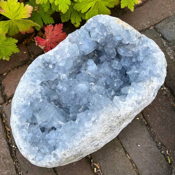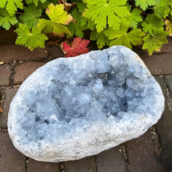 EN: Large piece of Celestien Geode of beautiful quality in the well-known light blue color. This beautiful piece comes from the famous site next to the coastal village of Katsepy in Madagascar. You will receive exactly this piece as shown in the photo.