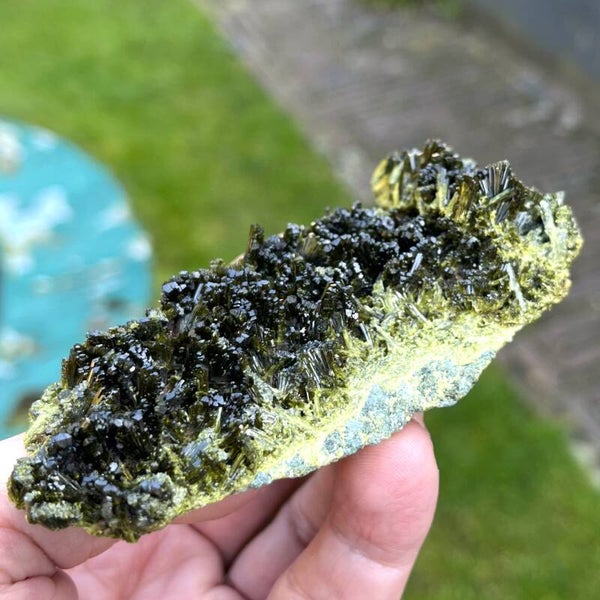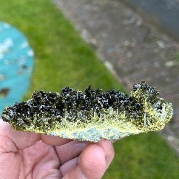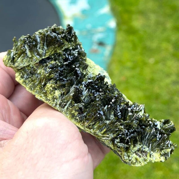 ES: Hermosa Epidota verde de Casterner de les Olles en España. Las varillas de epidota de este lugar suelen estar una al lado de la otra, pero en esta sección están parcialmente bellamente abanicadas. Recibirás exactamente esta pieza como se muestra en la foto.