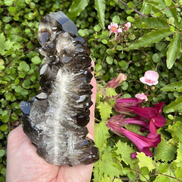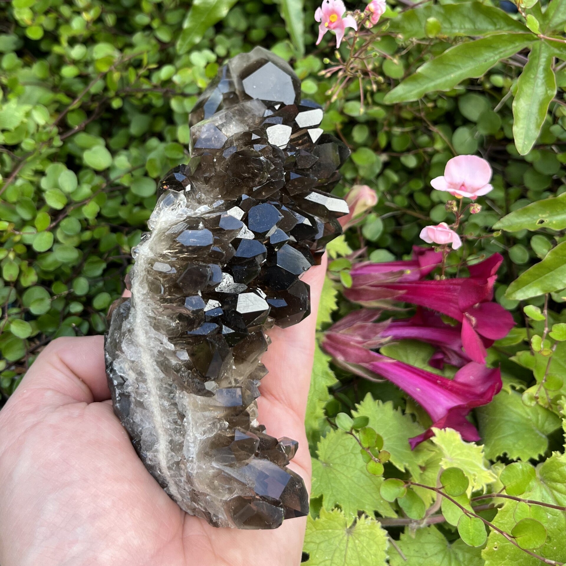 DU: Wunderschöner Morion-ähnlicher Rauchquarz aus der Provinz Minas Gerais, Brasilien. Die Oberflächen der Kristalle haben einen wunderschönen Glanz, sodass das Stück wunderschön funkelt, wenn Sie es in der Hand drehen. Sie erhalten genau dieses Stück wie auf dem Foto abgebildet.
